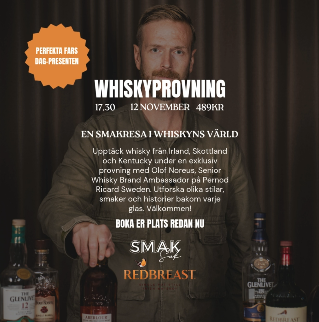 Vi välkomnar tillbaka Olof Noreus, Senior Whisky Brand Ambassador på Pernod Ricard Sweden, för en kväll fylld av doft, smak och kunskap. ✨